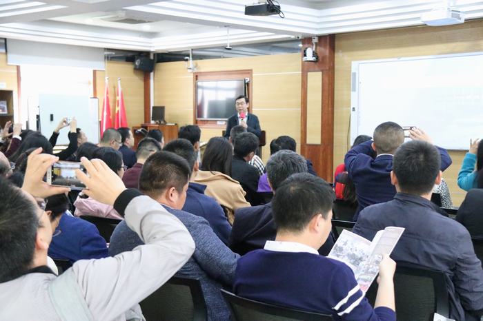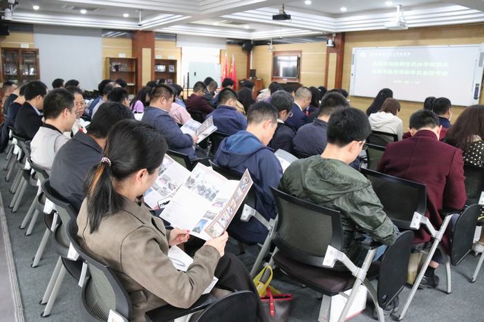 參觀結(jié)束,我校卜祥林校長對考察團(tuán)成員作了題為《辦優(yōu)質(zhì)高端名校,育多元精英人才》的學(xué)校建設(shè)與發(fā)展講座。講座中,卜校長重點(diǎn)介紹了“美好教育”辦學(xué)理念、“五星十最”“六藝十能”德育及能力課程、“一體兩翼”(國際理解、藝體、創(chuàng)客)特色建設(shè)成果等方面的情況。卜校長還用我校中高考取得的良好成績,以及我校參加區(qū)調(diào)考六個年級全部位列民辦學(xué)校首位的良好成績,向來賓剖析了“小班化”教學(xué)改革對教學(xué)質(zhì)量提升的良好推動作用,同時向來賓分析了民辦學(xué)校走“優(yōu)質(zhì)、高端”辦學(xué)之路的必要性和緊迫性。卜校的講座,理念先進(jìn)、案例充實(shí),受到了來賓的高度贊同,大家紛紛對重點(diǎn)內(nèi)容進(jìn)行拍照留存。