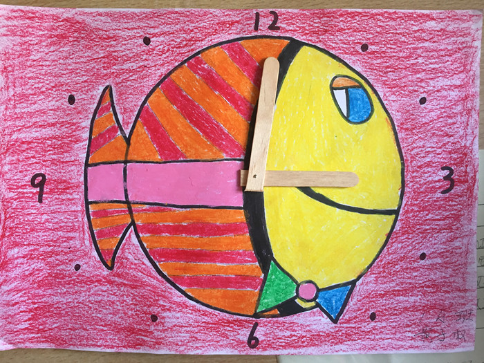 一年級(jí):創(chuàng)意鐘表畫,老師們啟發(fā)學(xué)生以鐘表為基本素材,以繪畫的方式評(píng)選出了學(xué)生優(yōu)秀創(chuàng)意鐘表作品。