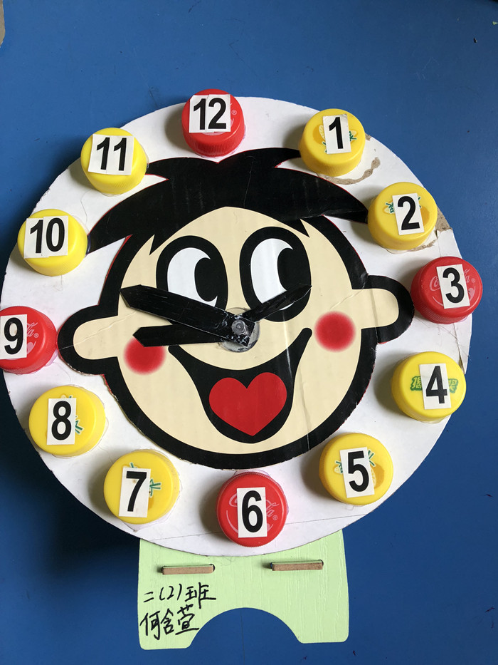 二年級(jí):創(chuàng)意鐘表制作,充分發(fā)揮想象力和創(chuàng)造力,通過“變廢為寶”的方式,將自己心中的鐘面描繪在塑料瓶上、硬紙盒上、卡紙上。孩子的創(chuàng)新思維讓人驚嘆,甚至有孩子用羅馬數(shù)字制作了別樣的鐘面。