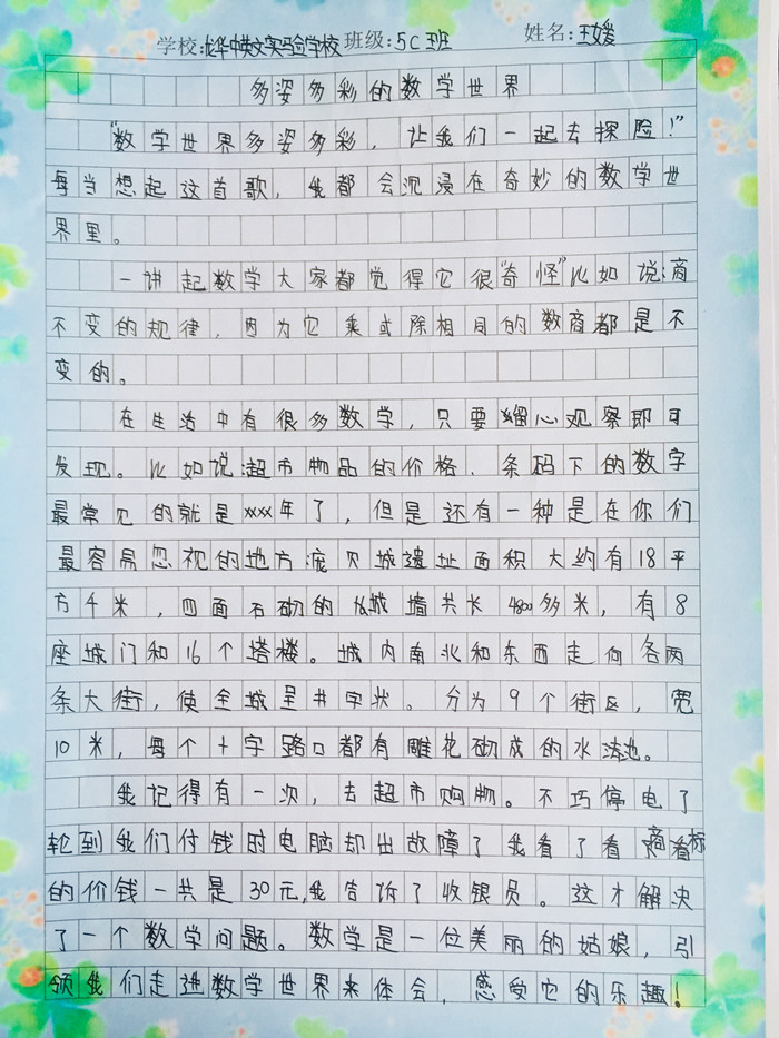 五年級(jí):數(shù)學(xué)作文,用數(shù)學(xué)描述著生活,體會(huì)數(shù)學(xué)來源于生活,與我們的數(shù)學(xué)息息相關(guān)。