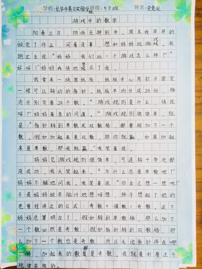 五年級(jí)學(xué)生部分?jǐn)?shù)學(xué)作文