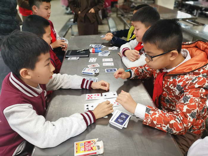 三年級(jí)、五年級(jí):“24點(diǎn)挑戰(zhàn)賽”,用小小的撲克牌,凸顯著我們的速算能力。認(rèn)真思考的我們!