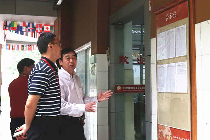 時間: 2019-04-22 作者:龍華中英文實驗學校 閱讀次數: 33222019年4月19日,深圳市龍華中英文實驗學校掛牌責任督學、龍華中學包強平校長,第六責任區殷木森、李紹金教研員督學,第六責任區詹雪光督學助理等一行4人,到校進行了四月督導檢查。本次督導檢查的重點是“校務管理和制度執行情況”。