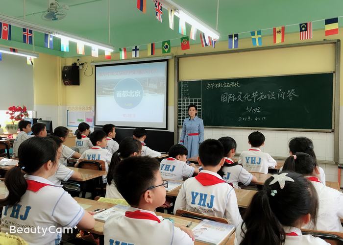在“項(xiàng)目學(xué)習(xí)”課程中,1-6年級(jí)學(xué)生分別就“中外飲食文化”、“中外節(jié)日民俗”、“中外禮儀文化”、“中外地理生物常識(shí)”、“世界名城博覽”、“世界知名學(xué)府”等六大方面,進(jìn)行了國(guó)際知識(shí)和文化的學(xué)習(xí)探究,并以年級(jí)、班級(jí)為單位開(kāi)展國(guó)際知識(shí)競(jìng)賽,在豐富拓寬知識(shí)面的同時(shí),也積極引導(dǎo)學(xué)生對(duì)中外文化進(jìn)行對(duì)比,尋找差異,從而增強(qiáng)對(duì)本民族的文化認(rèn)同。