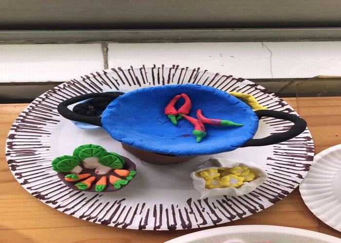 除了常規(guī)的書(shū)寫(xiě)、繪畫(huà)、網(wǎng)絡(luò)搜索等學(xué)習(xí)活動(dòng),一年級(jí)的孩子們還根據(jù)各國(guó)飲食文化的不同,開(kāi)展了“橡皮泥美食創(chuàng)意作品展”。