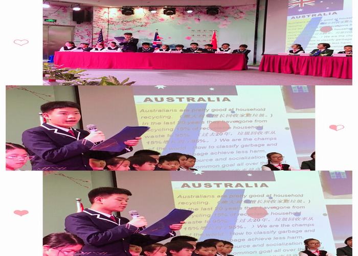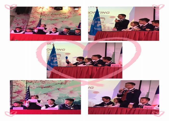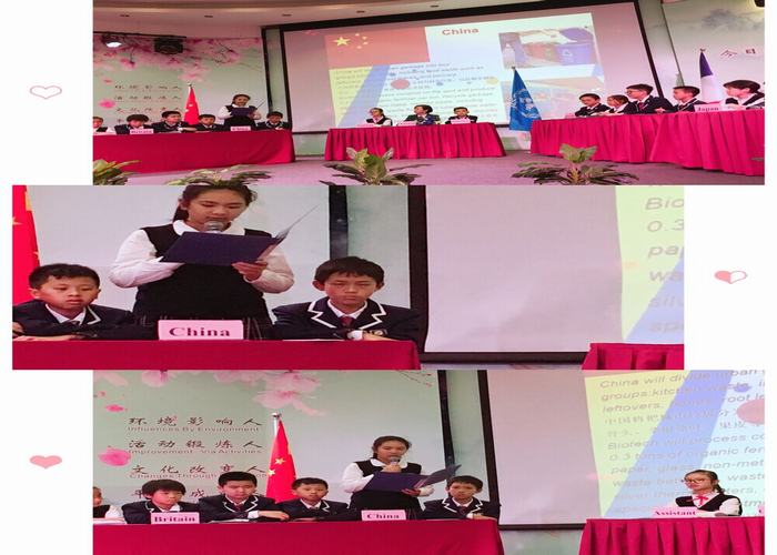 5-6年級(jí)的孩子們則充分發(fā)揮了高段英語(yǔ)語(yǔ)言能力優(yōu)勢(shì),召開(kāi)了以《在全世界倡導(dǎo)垃圾分類和環(huán)保》為主題的“模擬聯(lián)合國(guó)大會(huì)”。