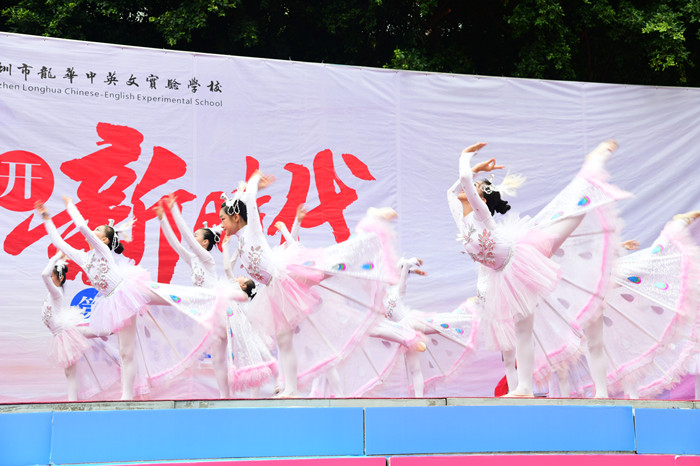 參加本次活動的有龍華區教育科學研究院音樂學科楊旭教研員,集團副總裁戴桓標先生,廣東省中小學教育專家、集團總校校長畢國軍博士,全國名校長、特級教師、學校卜祥林校長,集團幼教中心彭雪莉主任,學校黨支部鄧木金書記,金玉善、胡化忠副校長,以及兄弟學校代表、家委會成員、媒體朋友等嘉賓近60人,小學部全體師生、家長3000余人。