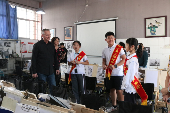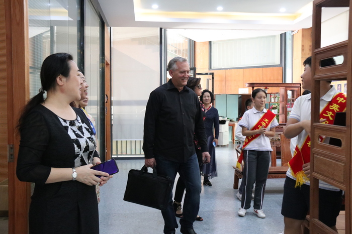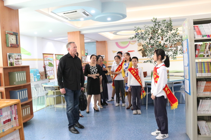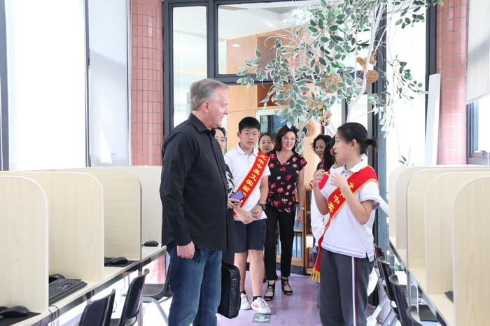 7日上午,參觀訪問代表團實地考察了我校高中美術(shù)專業(yè)教室、創(chuàng)客實踐工作室、社會資源中心、行政服務(wù)中心、圖書閱覽中心、小班化精品課堂等場室及學(xué)生學(xué)習(xí)情況,在集團及學(xué)校領(lǐng)導(dǎo)的陪同下,小學(xué)、初中、高中學(xué)生代表全程用英語對美國客人進行了介紹。來賓對我校一流的資源配置、學(xué)生良好的學(xué)習(xí)狀態(tài)紛紛贊賞,對孩子們的出色表現(xiàn)紛紛點贊。