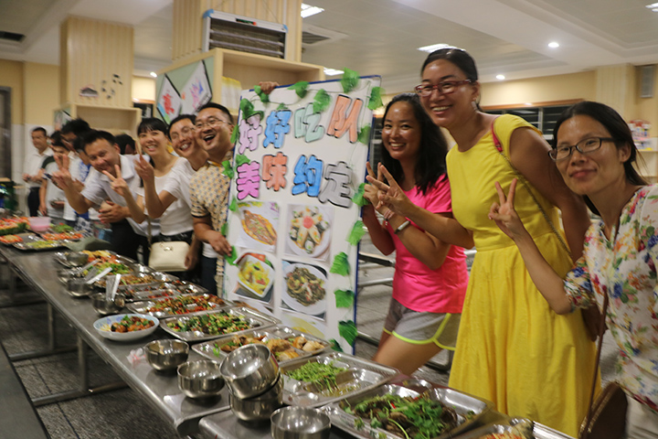 時間: 2016-11-02 作者:yuanhengjia 閱讀次數: 2674麻辣盤鱔、香蕉拔絲、客家釀豆腐、東北松子魚…,是不是流口水了!別慌,好菜在后面,公明中英文學校近期舉辦的教師廚藝大比拼,匯集五湖四湖的家鄉私房菜,讓老師們過足了口福。