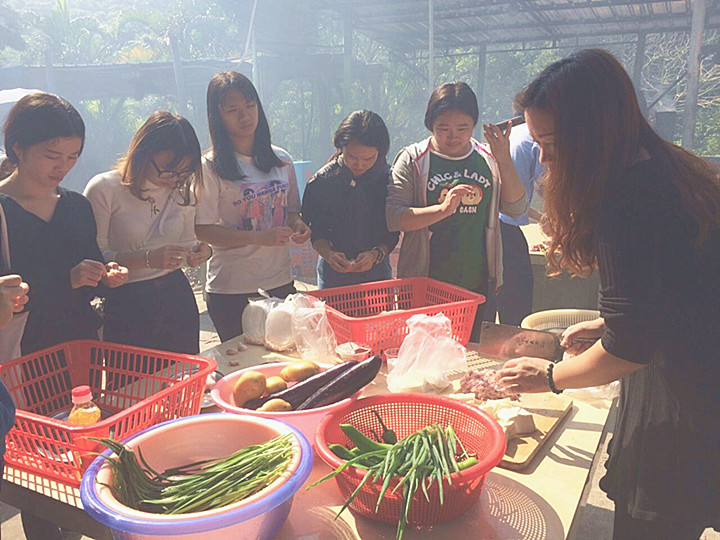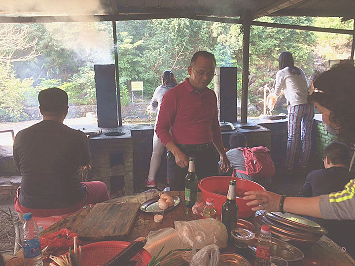 中午時(shí)分,大家來到了野炊基地。由于事先大家進(jìn)行了分組,所以剛到目的地大家忙碌起來,抓雞的抓雞,捉魚的捉魚,燒火的燒火,洗菜的洗菜......大家忙得不意樂呼。在大家齊心協(xié)力的協(xié)作下,一個(gè)小時(shí)后各組都奉上了美味的套餐。