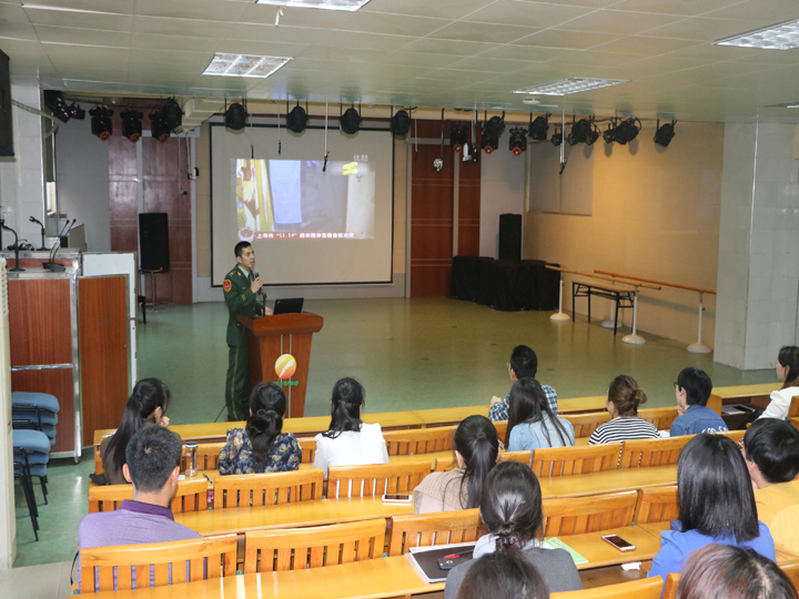 時間: 2016-12-15 作者:yuanhengjia 閱讀次數: 25522016年12月13日下午17:00,學校在一樓報告廳舉行全體教師消防知識培訓大會。培訓大會主講者:光明新區消防隊彭長劍隊長。彭隊長受學校的邀請,在百忙中抽空到學校對全體老師進行消防安全知識培訓。這是學校首次邀請消防隊的領導為學校老師做消防知識的專業輔導。