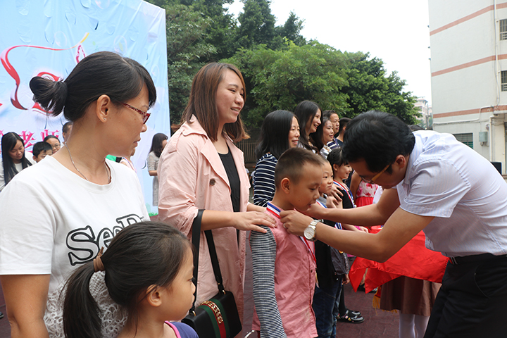 活動還特設了“校園達人”獎,對每個年級里優秀組合和個人進行集體頒獎,評出“年級最佳達人”、“學校藝術達人”、“學校體育達人”若干名,并邀請這些達人的家長們到校與孩子一起領獎,分三輪由校領導頒發達人獎牌,當達人們與家長們一起隨音樂走上紅地毯,全校師生的熱烈掌聲回蕩在整個校園。