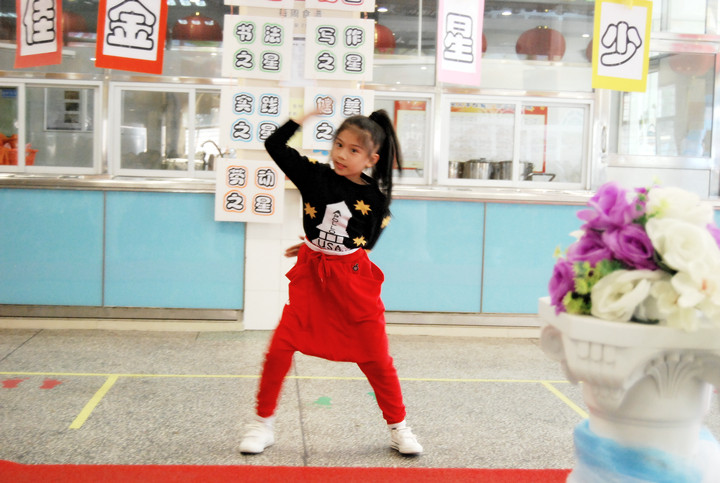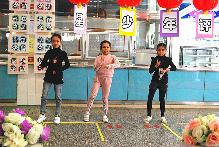 寒假期間,還有一些同學學習了一技之長,并借“十佳金星少年”評選這個平臺,向大家進行展示匯報:如三D班的唐雅詩同學表演的舞蹈就得到了大家的贊譽。活動間隙的幾個小節目穿插,帶動了全場的高潮!