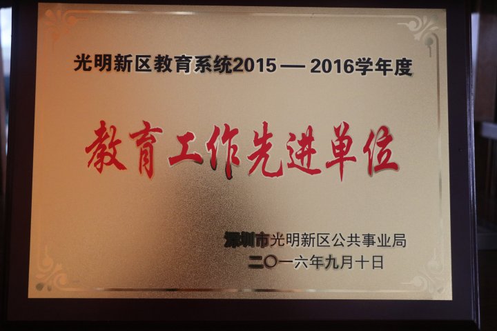 在今年的中考中,我校吳宇翔同學以439分的成績名列光明新區民辦學校第一名,考進深圳中學。學校也先后被授予深圳市德育示范校、深圳市首批優質民辦學校、廣東省義務教育標準化學校等榮譽稱號。