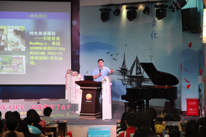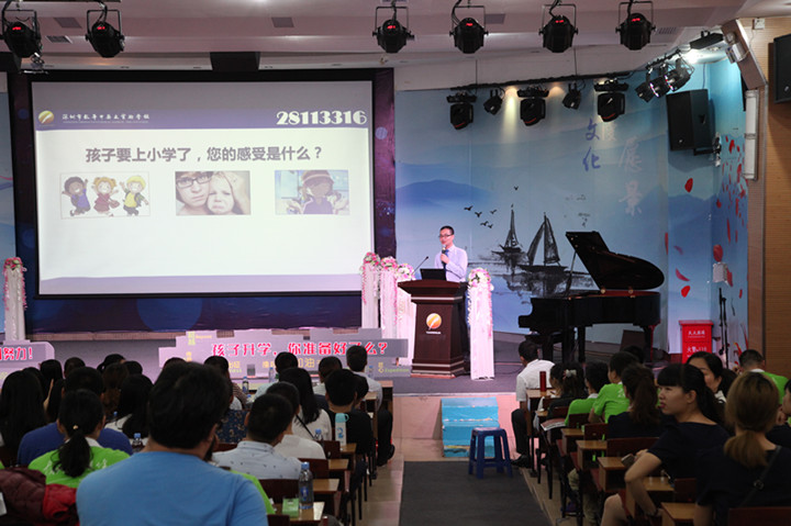 每場次的培訓講座分四個主要環(huán)節(jié):一是長期工作在小學教育一線的教育能手作培訓講座;二是集團學校建設管理方面的專家與家長進行幼小銜接經(jīng)驗交流;第三個環(huán)節(jié)穿插在前二個環(huán)節(jié)中,利用培訓講座間隙,由集團親子教育導師與幼兒家長進行互動。第四個環(huán)節(jié)是集團安排專門人員參觀龍華中英文實驗學校的校園環(huán)境、小班化、國際化、校園文化等方面的建設情況。