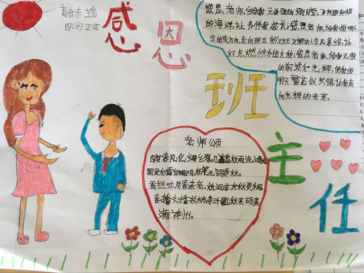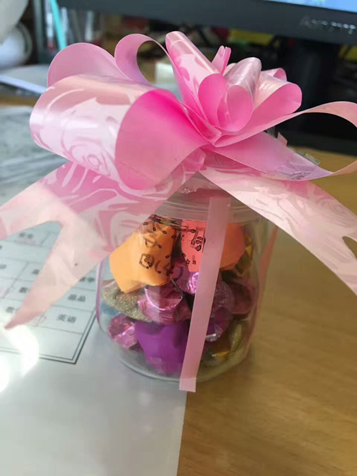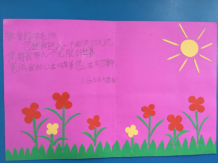 一點心意:倡議每位學生、家長親手合作完成(杜絕購買)一件手工創意作品在班主任節期間送給班主任,抒一份情,致一份意。