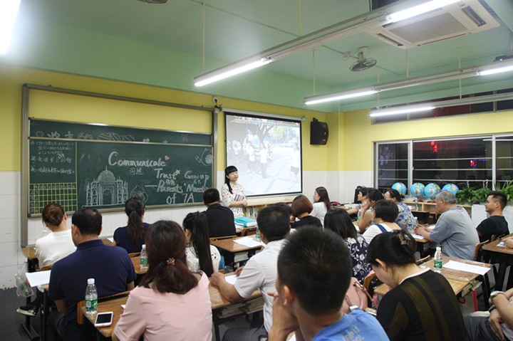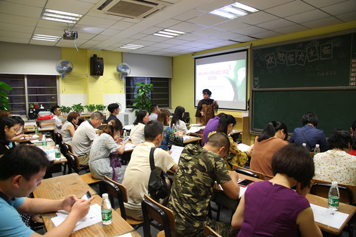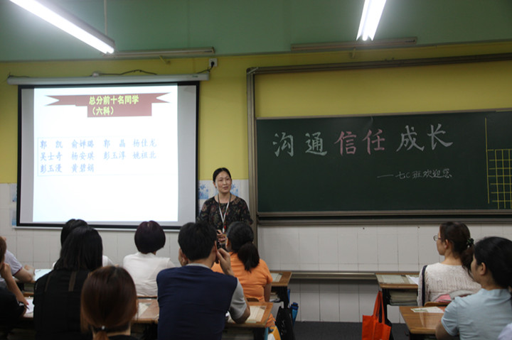 家長會(huì)分兩個(gè)階段,第一個(gè)階段是在階梯教室集中進(jìn)行。晚上7點(diǎn)10分,階梯教室座無虛席。學(xué)部張翠玲主任就初中部的優(yōu)秀教師團(tuán)隊(duì)做了介紹,對(duì)本學(xué)期初中部所取得的一系列成績(jī)向家長們做了匯報(bào),最后張主任言辭懇切地談到了家校合作的重要性,希望家長們能積極支持學(xué)校的工作,更多地關(guān)心孩子們的學(xué)習(xí),更好地促進(jìn)學(xué)生的健康成長。