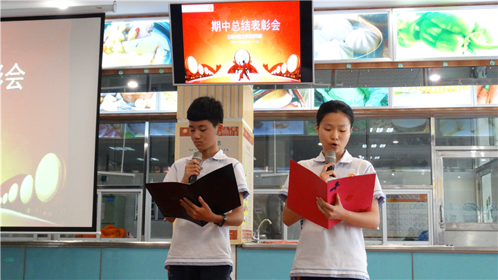 此次表彰大會接著有序進(jìn)行,魏付杰主任宣讀表彰決定和學(xué)生名單,對七年級年級前25名,八年級年級前15名的成績優(yōu)異的學(xué)生和優(yōu)秀學(xué)生干部、優(yōu)秀志愿者以及前半學(xué)期班風(fēng)正,學(xué)風(fēng)優(yōu),成績棒的最佳團(tuán)隊8B、七E班進(jìn)行表彰。在表彰過程中,氣氛熱烈,掌聲雷動。極大激勵了同學(xué)們的學(xué)習(xí)熱情,臺下的同學(xué)們?yōu)槟苡凶约旱陌嗉壨瑢W(xué)被提名一直熱烈鼓掌,將大會的氣氛推向高潮。此次頒獎相信已為沒有被表彰的學(xué)生和集體樹立了標(biāo)桿、努力的方向。