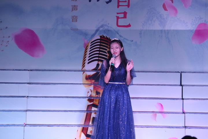 龍華中英文實(shí)驗學(xué)校的李樂滋同學(xué)激情演唱《娛樂天空》,臺上的他就像一個發(fā)光體,他就是不斷挑戰(zhàn)自我。