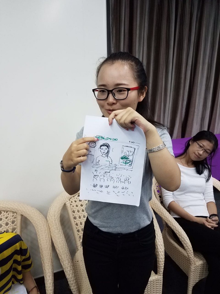 一個(gè)別開生面的“自畫像”自我介紹形式讓大家輕松愉快的拉近了關(guān)系。