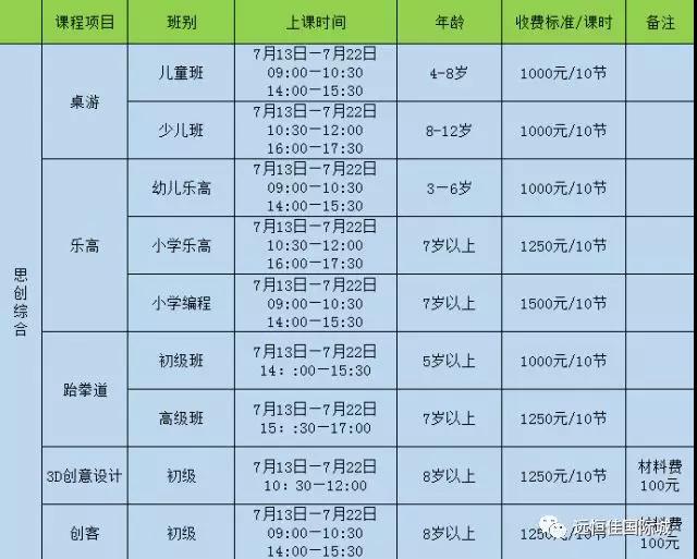 暑假開(kāi)設(shè)的班級(jí):桌游、樂(lè)高、跆拳道、3D創(chuàng)意設(shè)計(jì)、創(chuàng)客