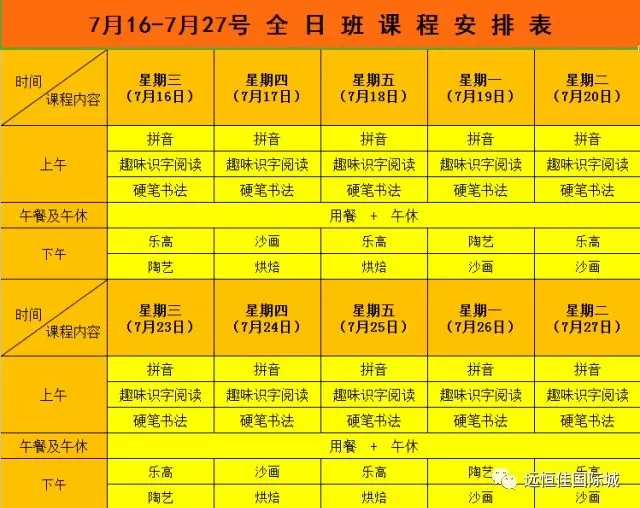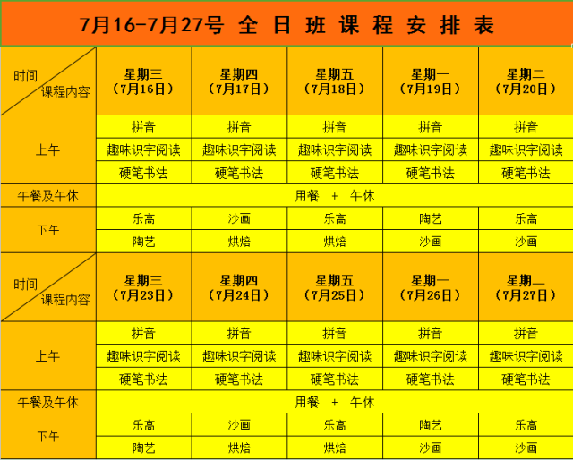 暑假開(kāi)設(shè)課程內(nèi)容:拼音、趣味識(shí)字閱讀、硬筆書(shū)法、樂(lè)高、陶藝、沙畫(huà)、烘焙