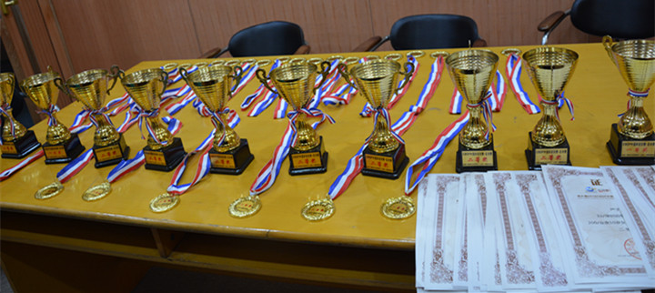 圖為少年宮拉丁舞學員在此次比賽中獲得的獎杯、證書、獎牌。