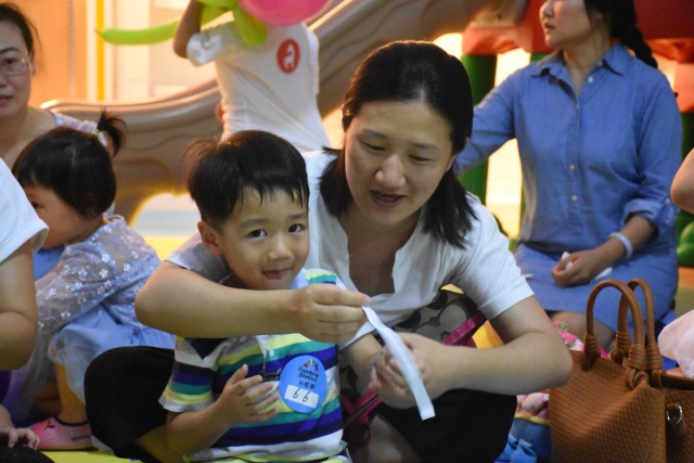 孩子們和媽媽們一起找到有秘密的氣球,并把氣球里的秘密找出來,大聲的念出來!