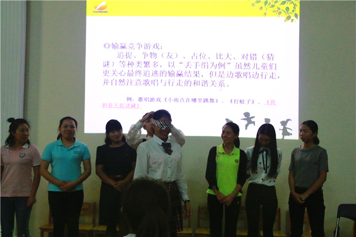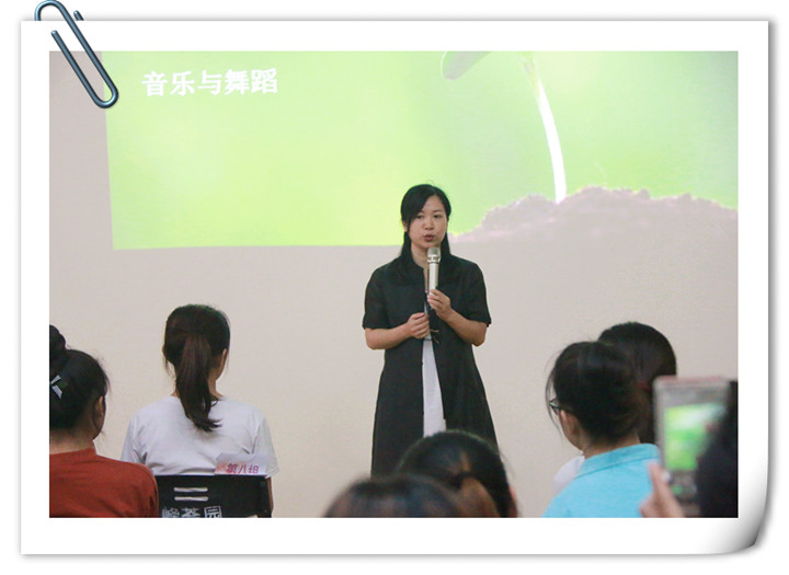 深圳市遠恒佳教育集團學前教育管理中心教研員,深圳市學前教育專業委員會第二屆骨干講師團講師萬婷婷老師現場指導老師們運用音樂游戲創編策略,設計更貼近幼兒本性的歌唱游戲; 通過歌唱游戲實例,引領老師們簡單重復、潛心體會、簡便低耗、循環漸進、合拍合樂等歌唱游戲的創編原則。