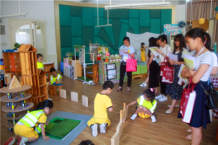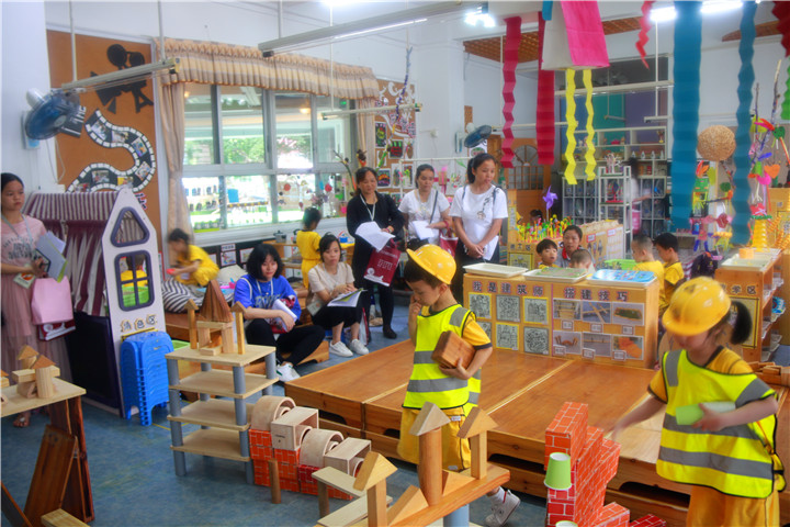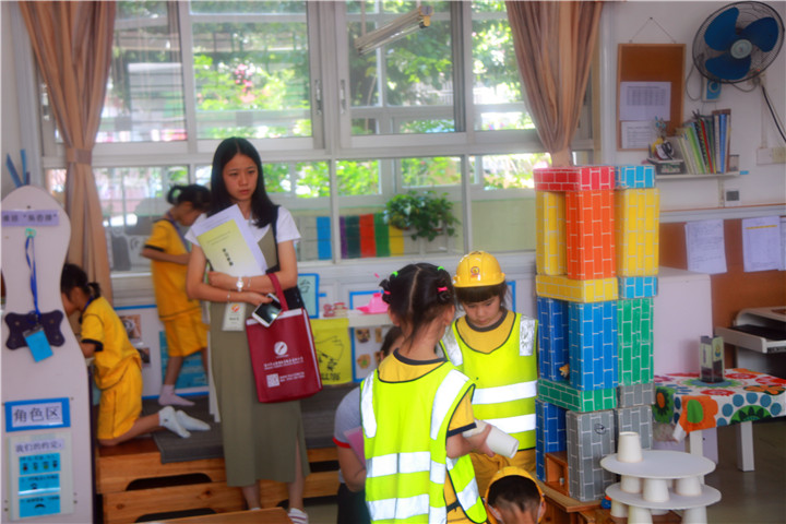 深圳市龍華中英文實驗學校幼兒園在此次跟崗全園同時開放,跟崗成員在跟崗之前組成三大組分別進入小、中、大班的建構(gòu)區(qū)進行觀摩、學習。在觀摩中間接引發(fā)思考,帶著問題組內(nèi)討論,組與組之間交流,發(fā)表自己的想法與觀點,直接獲取經(jīng)驗!