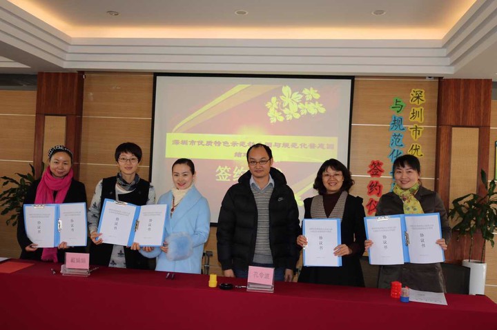 簽約儀式當(dāng)天龍華中英文實(shí)驗(yàn)學(xué)校幼兒園作為深圳市60多家優(yōu)質(zhì)特色示范園之一,園長(zhǎng)孔令波先后與龍華樂(lè)景幼兒園、大浪幸福小天使幼兒園、觀瀾新富龍幼兒園簽訂了結(jié)對(duì)幫扶協(xié)議。