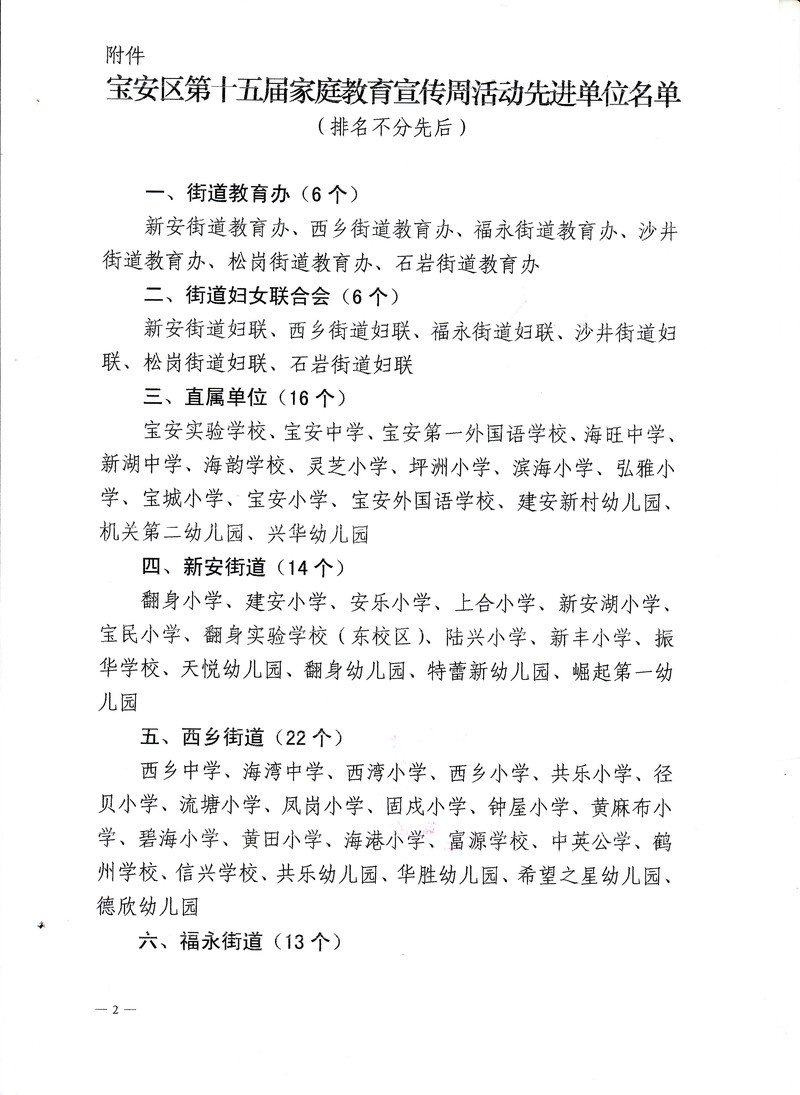 熱烈慶祝我校榮獲“寶安區(qū)第十五屆家庭教育宣傳周活動(dòng)先進(jìn)單位”光榮稱號(hào)