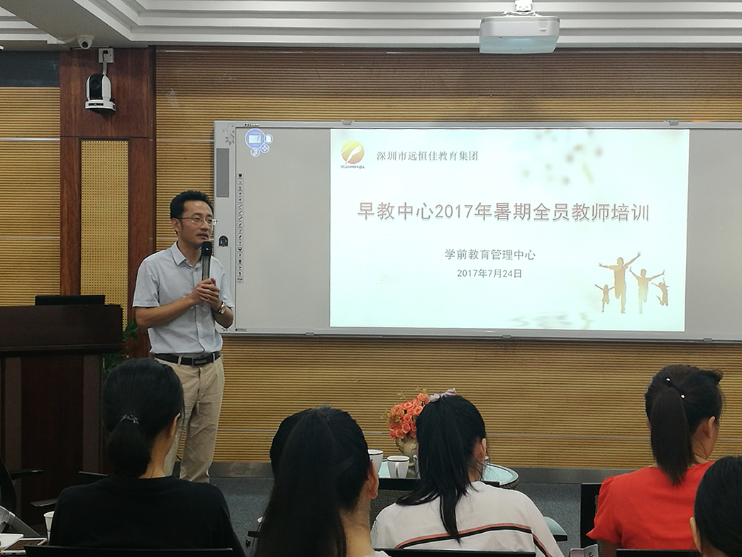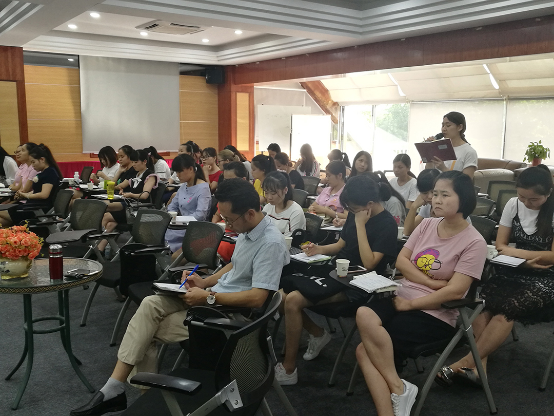 本期培訓是遠恒佳教育集團學前教育管理中心成立以來,組織的第一次集中培訓,全體早教一線陪伴師近百人次參加了培訓。培訓按照專題劃分為三個場次逐一開展,內容涉及《萌閱寶貝課程整體架構》、《陪伴師言行舉止規范》、《萌閱經典閱讀活動指引》等。學前教育管理中心對早教隊伍建設及發展極度重視,在教研部孫樹志部長、萬婷婷部長的支持下,席夢瑤、曾維仁、黃林芝三位講師分別從理論、實踐、指引三個層面,帶領陪伴師們討論、研學。在嚴謹、寬松的互動中陪伴師們度過了一段快樂的暑期學習之旅。