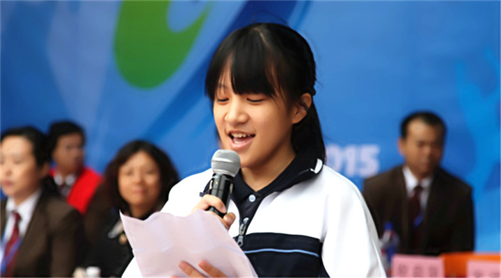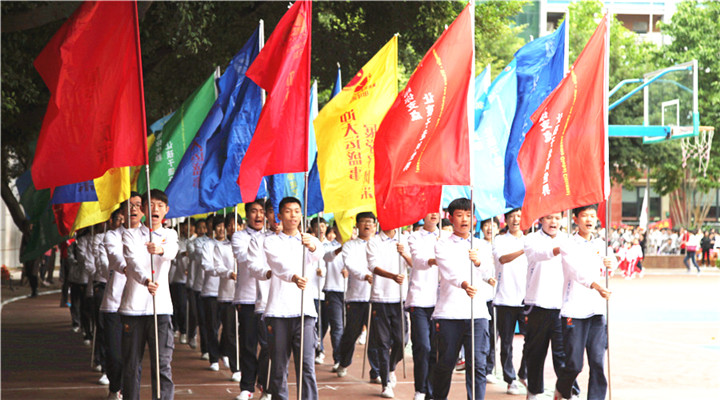上午8:30,入場式正式開始。首先入場的是國旗、團旗、校旗護衛(wèi)隊,他們由高中國旗班全體成員組成。接著是會徽、標(biāo)語牌引導(dǎo)隊,緊隨其后的是