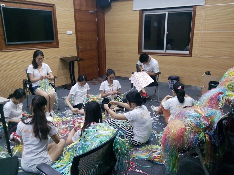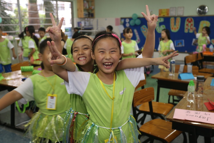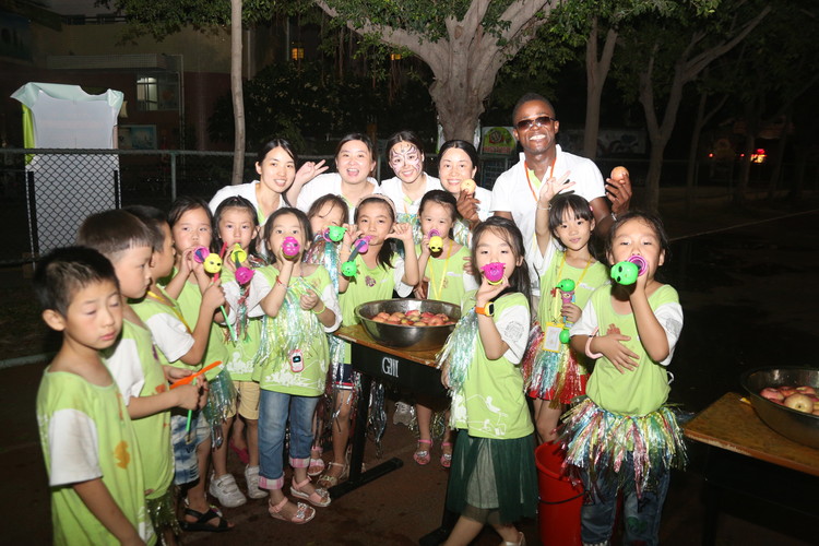 為了準備此次主題活動,全體教職工們都付出了辛勤的汗水。教師們積極準備材料,助教們不辭辛苦、加班加點地為全體師生精心趕制草裙300余條,外教Keiron用土豆雕刻出許多叢林印章,藝體教師們為孩子們裝扮各種叢林造型的面部彩繪、蓋上叢林印章,為晚會營造了良好的亞馬遜叢林氛圍。