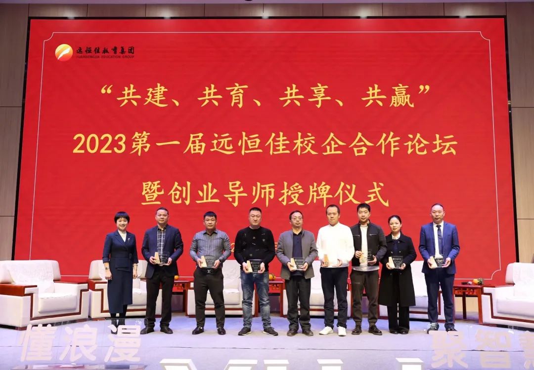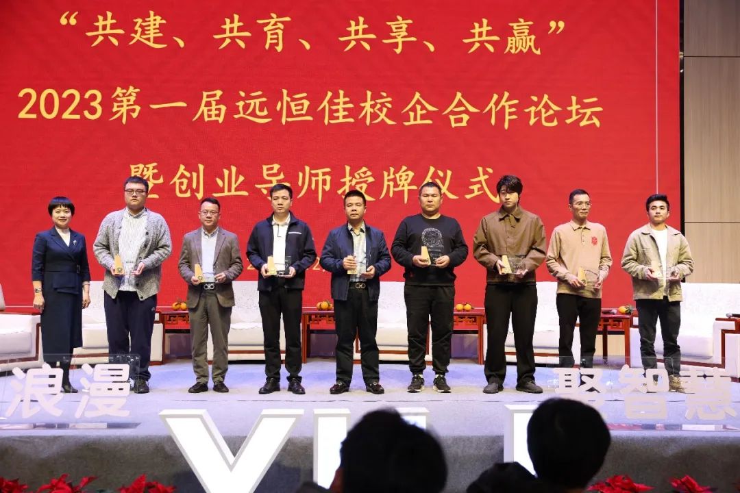 遠恒佳現代產業學院首創了公司制職業教育模式,學生組建28人創業小組,成立了創業公司,通過企業課堂、企業家大講堂、公司例會和創業實踐項目等,開展創新創業學習實踐。為更好地實施公司制教育模式,本屆論壇聘任了40位企業家擔任創業導師,隆重舉行創業導師授牌儀式。遠恒佳教育集團宋遠標董事長、麥麗芬副董事長向創業導師們頒發了導師牌匾。