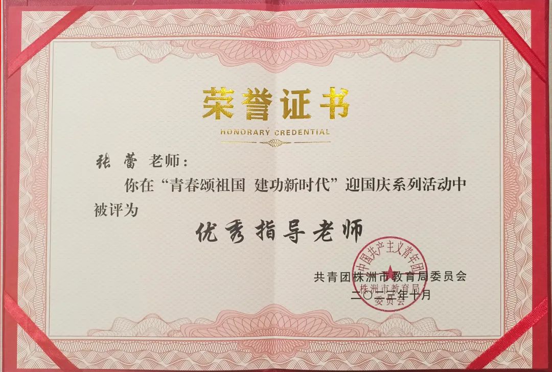 時間: 2023-11-03 作者:yuanhengjia 閱讀次數(shù): 1528近日,株洲市教育局團委在直屬學校中開展的“青春頌祖國,建功新時代”迎國慶系列活動評比揭曉,我校劉麗娟、蔡沁晨辰、馮柔嘉、范幸鉉、楊雨萱等五名同學的4件作品在“巧手剪紙慶國慶,同心祝福獻祖國”的剪紙比賽活動中分別榮獲高中組一、二、三等獎,美術老師張蕾被評為優(yōu)秀指導老師。