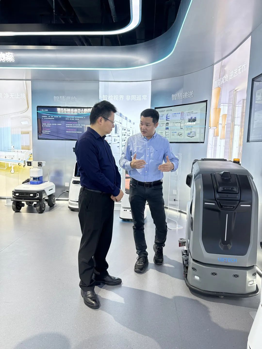 在科創(chuàng)中心,宋遠標董事長對于目前場館建設現狀及課程開展情況進行了詳細介紹,并陪同長壽區(qū)政府考察團一行進行體驗觀摩了教學區(qū)、人工智能區(qū)等多個板塊。