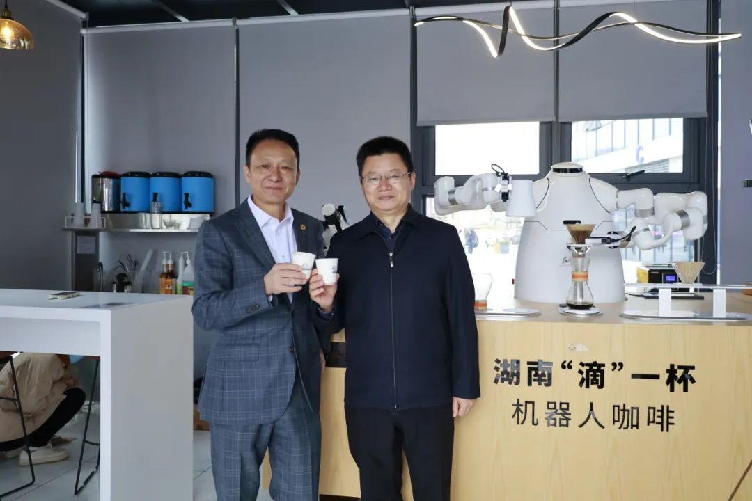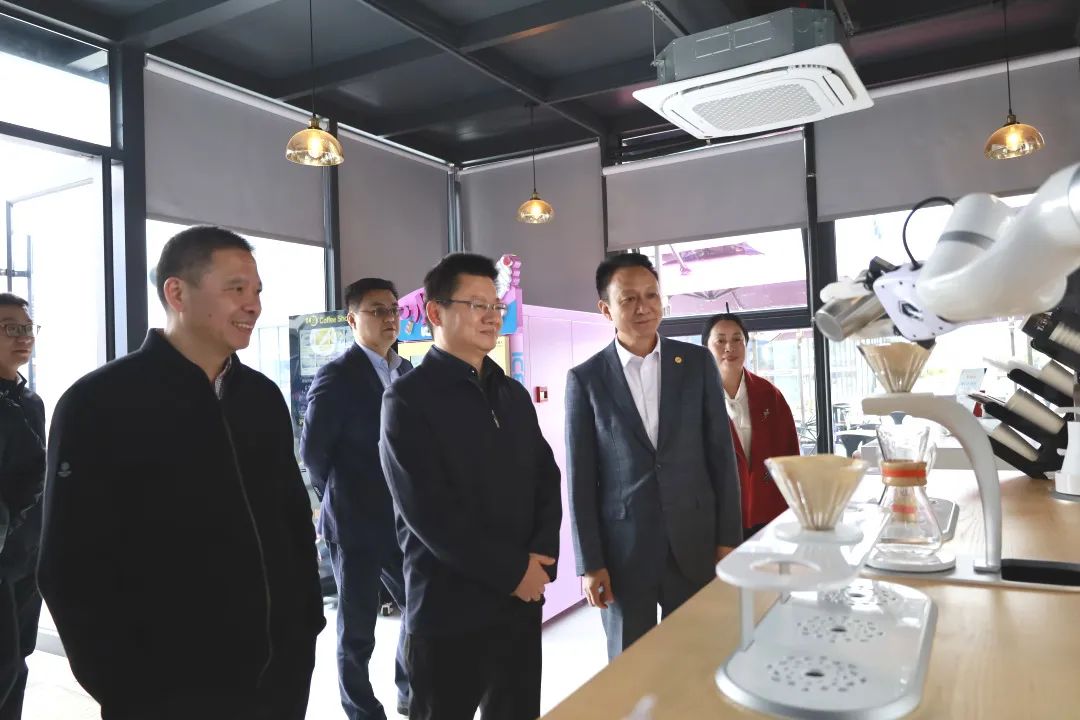 隨后,宋遠標董事長陪同長壽區(qū)政府考察團移步機器人咖啡屋,正在沖泡咖啡的智能機器人,吸引了考察團的領導們駐足。
