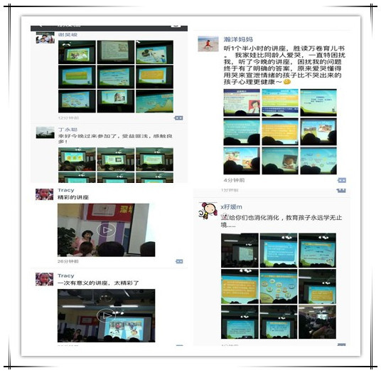 一個多小時的講座,家長始終如一,聚精會神地聆聽,積極踴躍地進行交流溝通,有的家長拿著筆記本做筆記,幾乎全部家長都會舉起手機拍下PPT上的亮點,好學好問的家長在講座后遲遲不肯離去,不停地向專家們請教。當天晚上,家長們的朋友圈便全是“唐玉萍專家”“講座”“受益匪淺”這些字眼了。