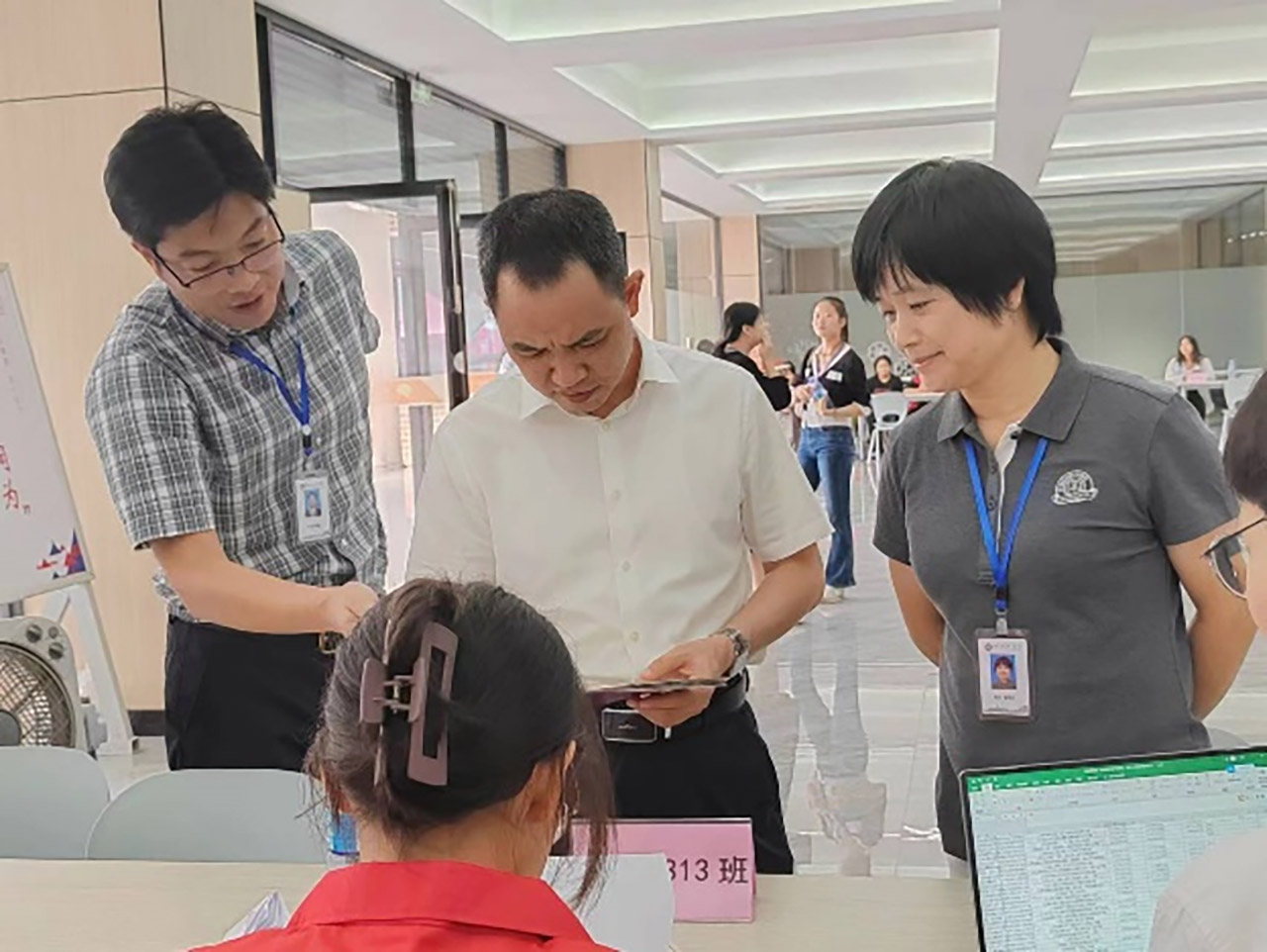 迎新期間,院長、辦公室主任、各科室負責(zé)人、各系部帶頭人來到新生報到現(xiàn)場,了解迎新工作的開展情況,問候關(guān)懷堅守一線的工作人員和學(xué)生志愿者,并在現(xiàn)場身體力行地做出表率,以飽滿的熱情迎接新生,與其親切交流,及時了解需求,言辭與行動中盡顯關(guān)心與愛護。現(xiàn)場工作在如此和諧融洽的氛圍中有序進行。