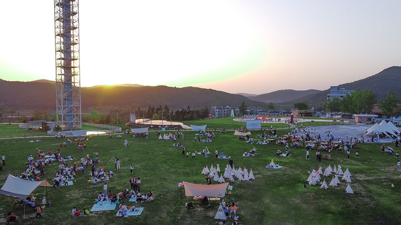 星空露營園以帳篷露營、戶外美學、潮流造趣和內容聯合等元素,開創了全新的戶外生活方式。我們整合了營地、景區、休閑、研學、運動、玩樂、主題活動等模式,推出了載人無人機、太空VR體驗館、蹦極塔、燒烤區、篝火晚會、一九酒吧、星空音樂吧等項目,滿足不同人群的山野體驗、精致露營、親子游樂、文青聚集、潮玩打卡等需求。
